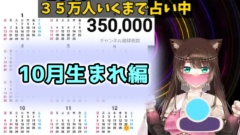 2023年8月8日。文野環(にじさんじの野良猫)のYouTubeチャンネルで、「35万人いくまで占い続ける耐久配信」が実施された。