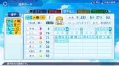 スポンサーリンク にじさんじ甲子園2023聖アザラシ学院高校 対変化球〇対左投手B走塁F送球A 【にじ甲2023】しっきー(四季凪アキラ)選手データ&個人成績 2023.08.182023.08.19 にじさんじ甲子園2023 成績詳細 打者成績 打率 試合 打席 打数 安打 二塁打 三塁打 本塁打 塁打 打点 得点 .267 5 16 15 4 1 0 0 5 1 0 三振 四球 死球 犠打 犠飛 盗塁 盗塁死 併殺打 出塁率 長打率 OPS 4 1 0 0 0 0 0 0 .313 .333 .646 試合 対戦相手 打席 打数 安打 二 三 本 塁打 打点 得点 三振 四球 死球 犠打 犠飛 盗塁 盗死 併殺 A2 勇者 3 3 1 1 0 0 2 1 0 1 0 0 0 0 0 0 0 A5 快盗 3 3 1 0 0 0 1 0 0 1 0 0 0 0 0 0 0 A7 横須賀 3 3 0 0 0 0 0 0 0 0 0 0 0 0 0 0 0 A9 王ヘル 3 3 1 0 0 0 1 0 0 1 0 0 0 0 0 0 0 9決 虚空 4 3 1 0 0 0 1 0 0 1 1 0 0 0 0 0 0